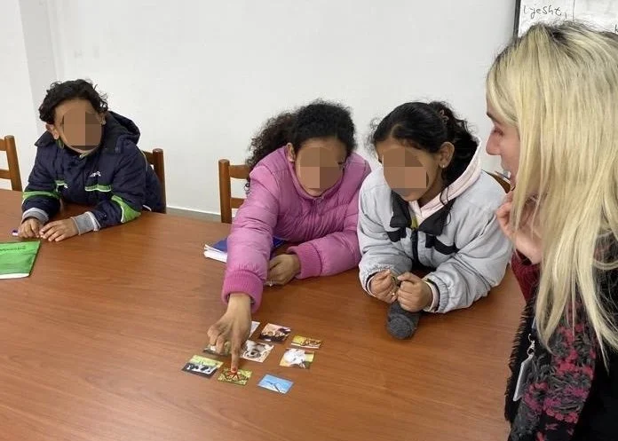 Tek Ura’s Albanian teachers and social workers support families through assessment, care planning and practical help to enable them to find their feet and immerse themselves in their new surroundings. Eralda Kodheli is an Albanian teacher who recently joined the project. She explained how community building is central to her role: ‘Community is crucial to people settling in Albania, for children to settle in school and orientate to their new surroundings’. ‘I am a language teacher but see our mission as to go beyond learning the language!’, she explains. We support children to navigate starting their new Albania schooling, helping families to have a better understanding of Albanian culture, and being available to help with homework, and being on-hand to help socially and emotionally. In addition to regular language lessons, Tek Ura operates an afterschool homework club with one-to-one support for refugee children. Youth projects have also been expanded to welcome children from the camp.